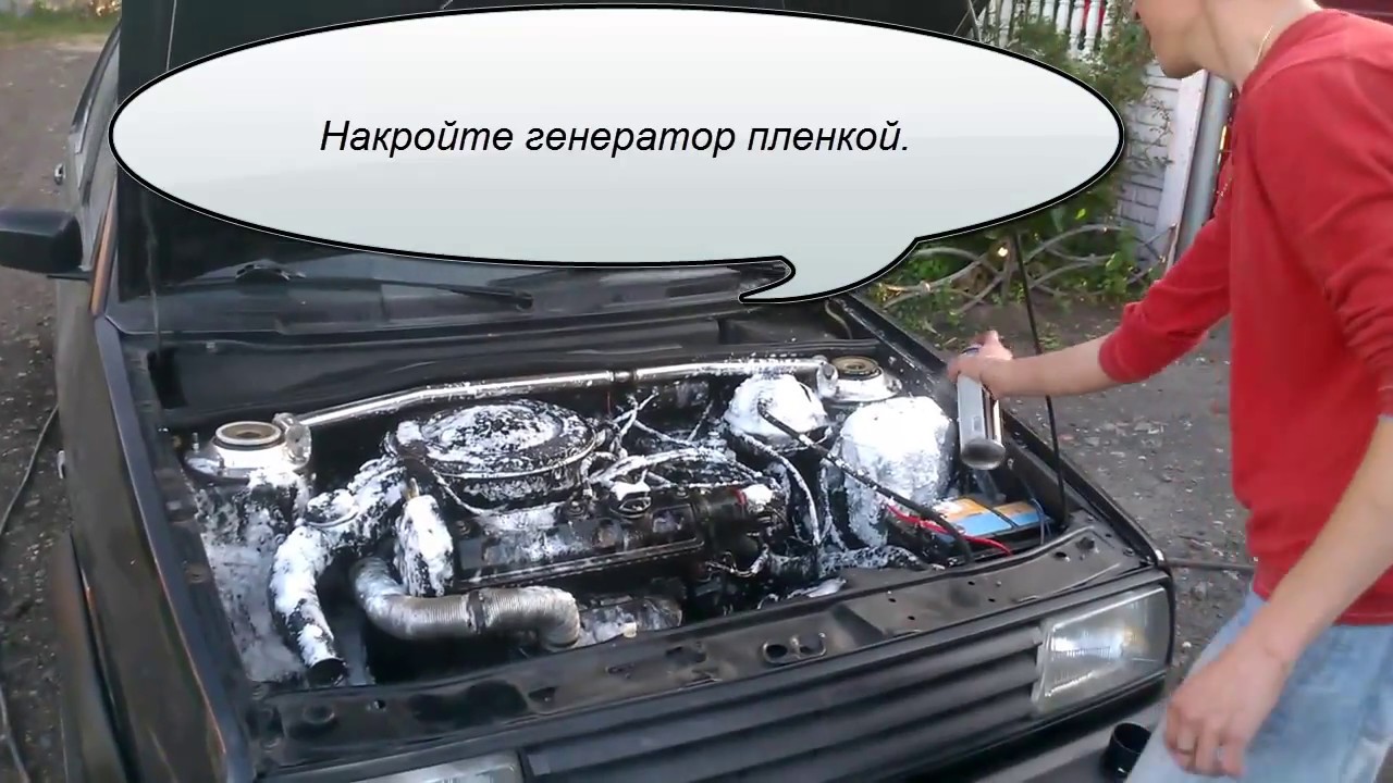 - Особое внимание уделите системе зажигания и генератору. Предварительно очищенные места контактов обработайте специальным защитным составом. Чтобы уберечь электрическую часть и воздуховоды от попадания влаги, используйте полиэтиленовые мешки, скотч или фольгу (ее удобно применять для изоляции от воды, так как она принимает форму предмета и хорошо удерживается на нем, без дополнительной фиксации).