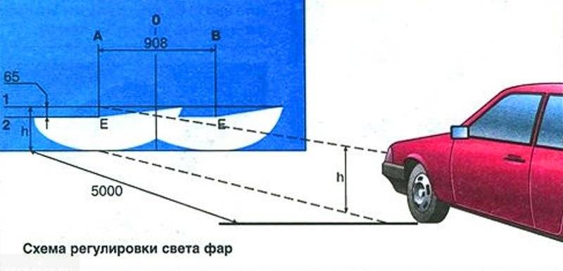 - Выставляет фары согласно нормативу, который указан в сервисной книге. Если его нет, то можно воспользоваться рисунком ниже.