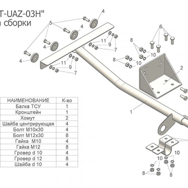 ТСУ укомплектован всем необходимым для установки на автомобиль. Полный перечень деталей указан в инструкции по установке.