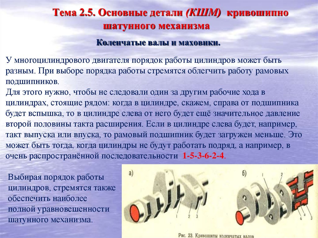 вращается в пяти коренных подшипниках скольжения. Осевое перемещение