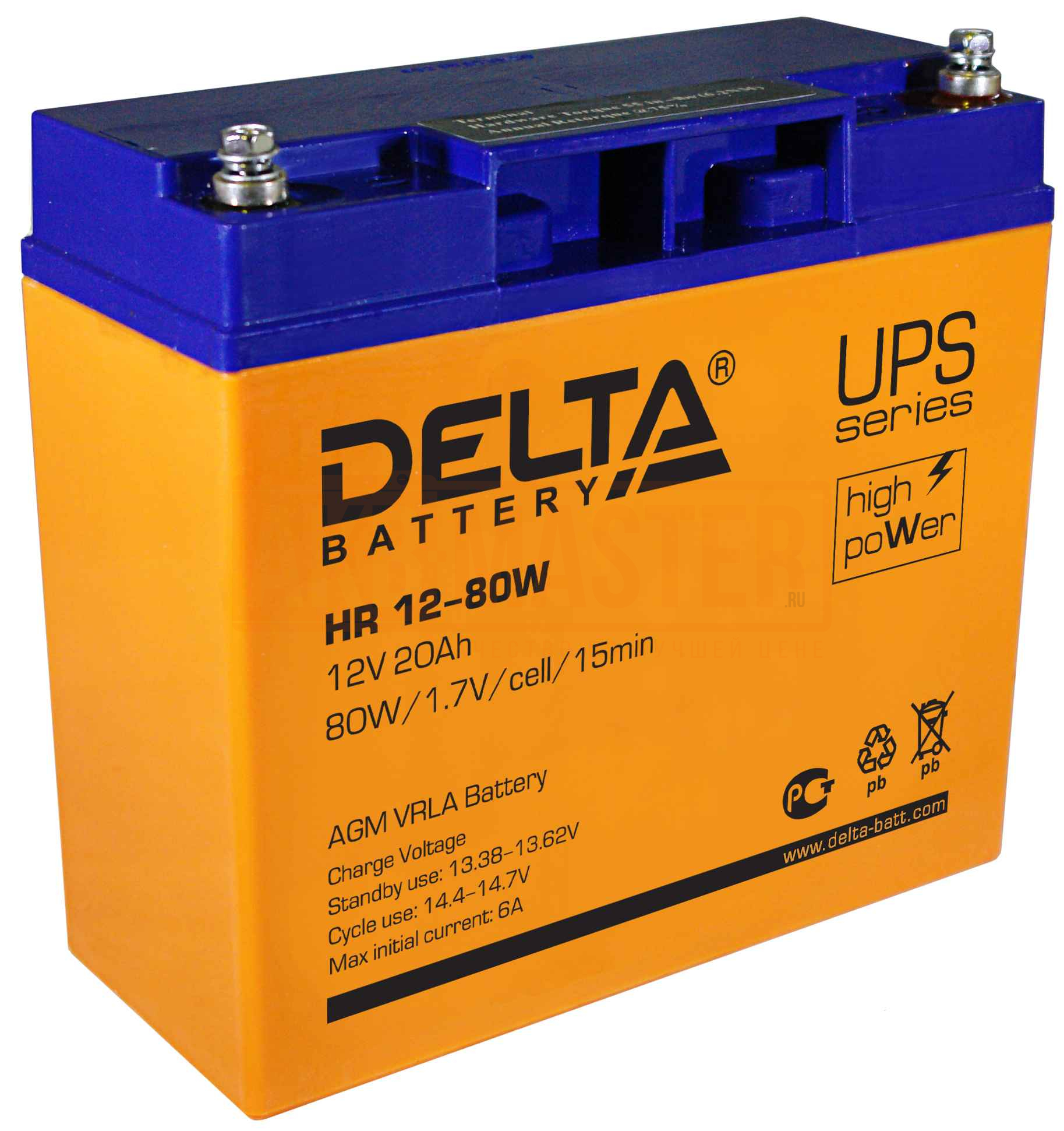 Замена этих аккумуляторов не представляет сложности, Необходимо открутить два винта на клеммах и соблюдая полярность заменить батарею на новую. Обращаем Ваше внимание, что в пускозарядное устройство можно ставить АКБ большей мощности, чем были установлены. Поэтому лучшим выбором при покупке новой батареи будет DELTA HR 12-80W, но у этой модели клеммы выступают над корпусом на 5-7 мм.