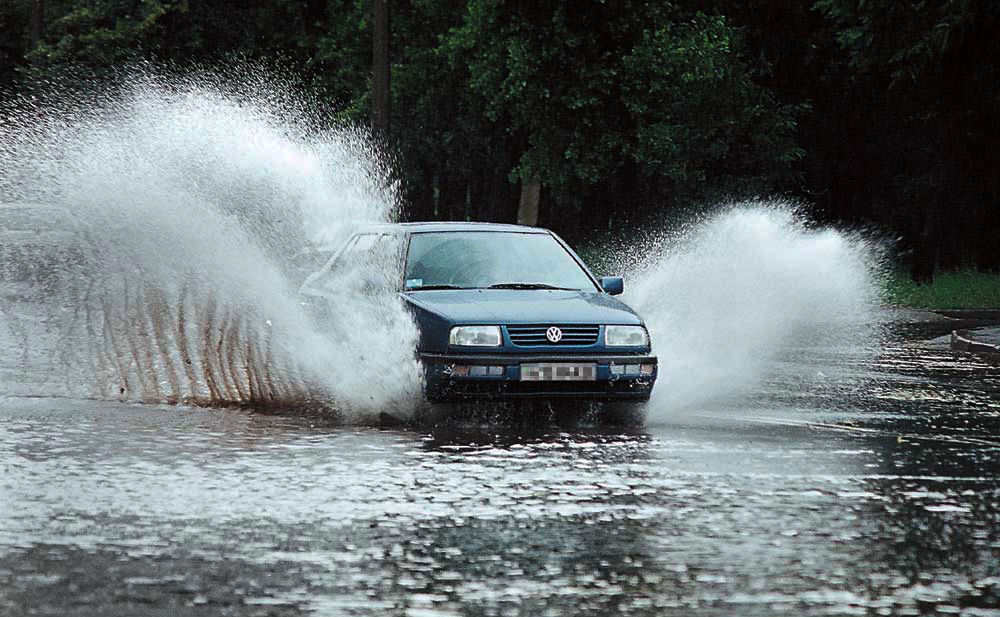 Второе условие –толщина водяного слоя на поверхности дорожного полотна. Просто езда по смоченной дождём дороге и въезд в лужу-разные вещи.