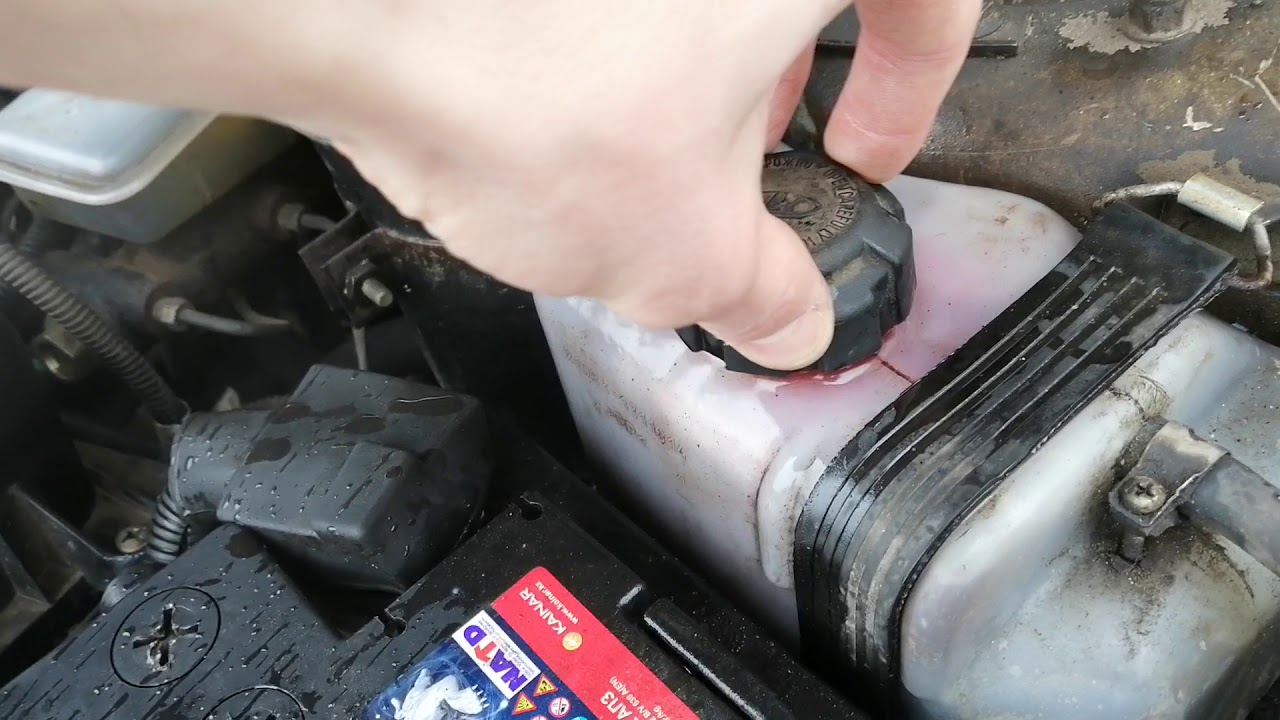 - Воздушная пробка убирается работой двигателя с открытой крышкой бачка.