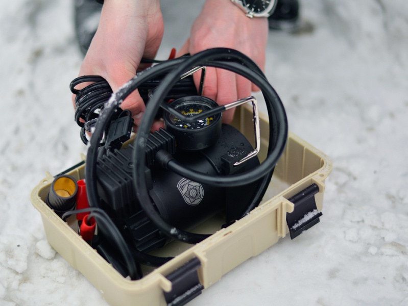 Габариты компрессора: 90x155x170 мм. Он занимает немного места в багажнике.