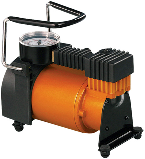 Лучший компрессор по соотношению здравый смысл — стоимость. Поршень алюминиевый, кольцо из фторопласта — долговечен. Металлический корпус работает как радиатор, чтобы компрессор не перегрелся. Без перерыва может качать 30 минут, в жару и мороз.