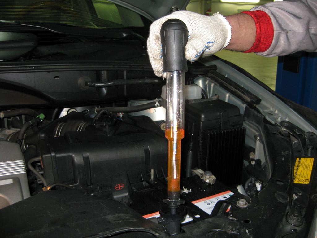 После этого запускаем двигатель на 30-60 секунд, чтобы жидкости смешались. Глушим, измеряем плотность. Мало – повторяем процедуру. Переборщили – придется лить дистиллированную воду.