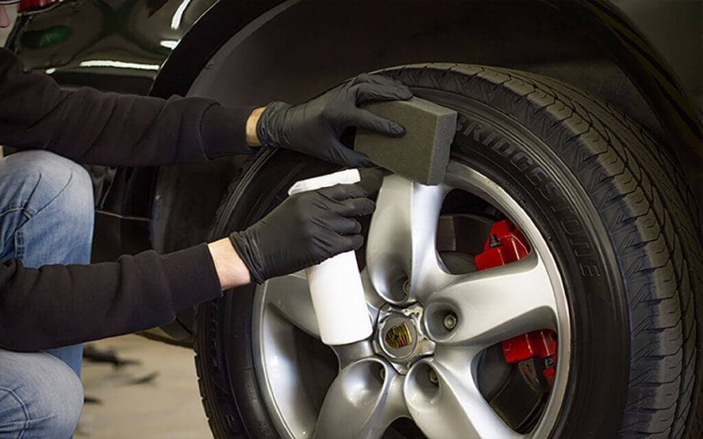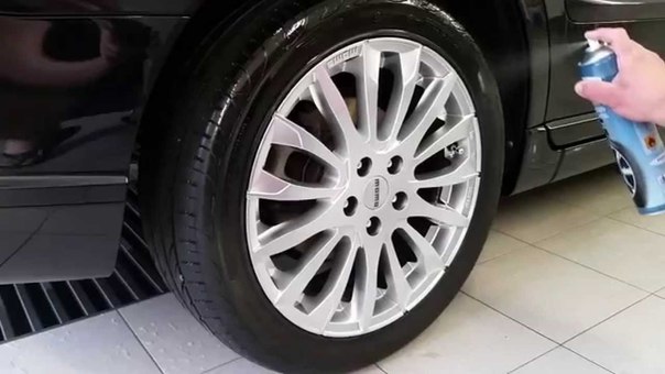 Состоит из растворителя и ПДМС. Распыляется на чисто вымытое колесо ровным слоем по боковой поверхности, через 10 минут протирается тканью.