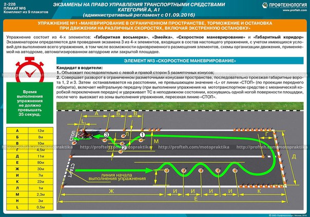 2. Практический экзамен на автодроме для двухколесных транспортных средств состоит из 3-х упражнений: