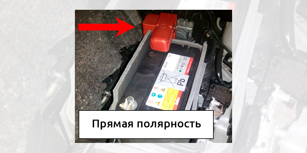 Для тех, кто не знает или забыл, стоит напомнить, что прямая полярность подразумевает нахождение плюсовой клеммы слева [+ -], тогда как «минус» при этом располагается справа. При установке АКБ обычно повёрнута этикеткой вперёд, а её клеммы находятся прямо перед глазами смотрящего.