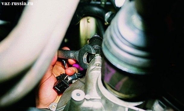 3) А после чего взяв в руки гаечный ключ, выверните при помощи него сам датчик, за грани которые присутствуют на нем.