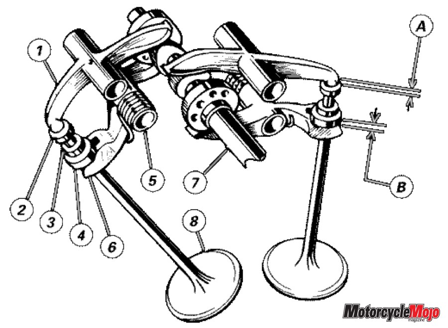 Коромысло устроено таким образом, чтобы давить на клапан снизу, заставляя его закрыться и находиться в закрытом положении необходимое время.