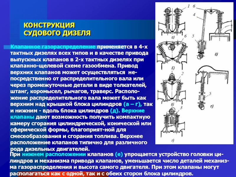 (нижнее расположение) или в картере в развале между цилиндрами. Привод клапанов производился толкателями,