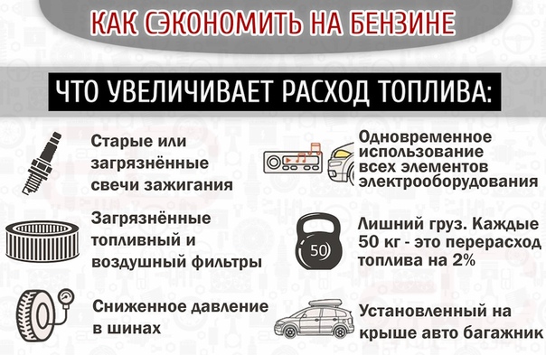 - Не храните в машине тяжелые предметы; дополнительные 100 фунтов в вашем автомобиле могут увеличить ваши расходы на бензин до 0,03 цента за галлон.
