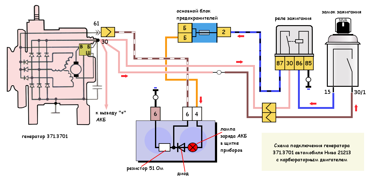 3701 для ВАЗ-21213 Лада Нива и ВАЗ-21214 Лада 4х4, устройство, принцип работы, проверка исправности генератора, регулятора напряжения и выпрямительного блока.