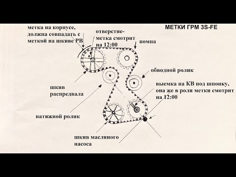Новый ремень ГРМ имеет метки, соответствующие меткам на звездочках кулачка и кривошипа. Дважды и трижды проверьте их ориентацию. Не беспокойтесь о провисании нового ремня.