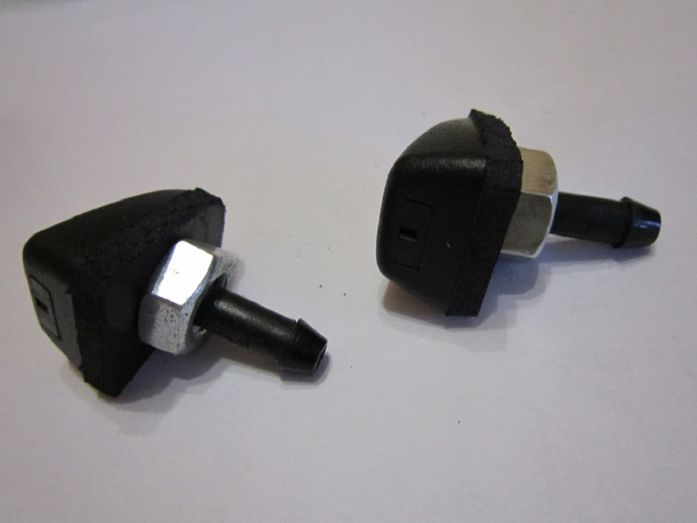 Форсунки были модернизированы, запросите в SeC новую деталь. На моей машине форсунки широко разбрасывают жидкость по экрану, а не как у вас с одиночными форсунками в стороны.