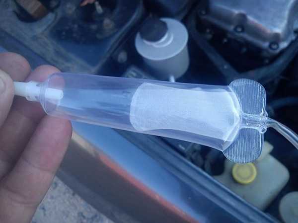 - Если под рукой не оказалось компрессора можно использовать шприц, в который необходимо набрать воды.