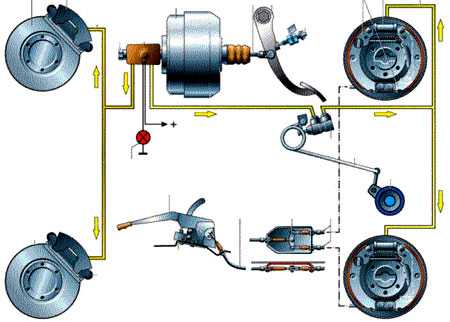 В тормозной системе присутствует как вакуумный усилитель тормозов, так и гидравлический. На задние колеса устанавливаются барабанные тормоза, а на передние — дисковые.