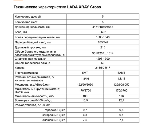 LADA XRAY – Технические характеристики – Официальный сайт LADA