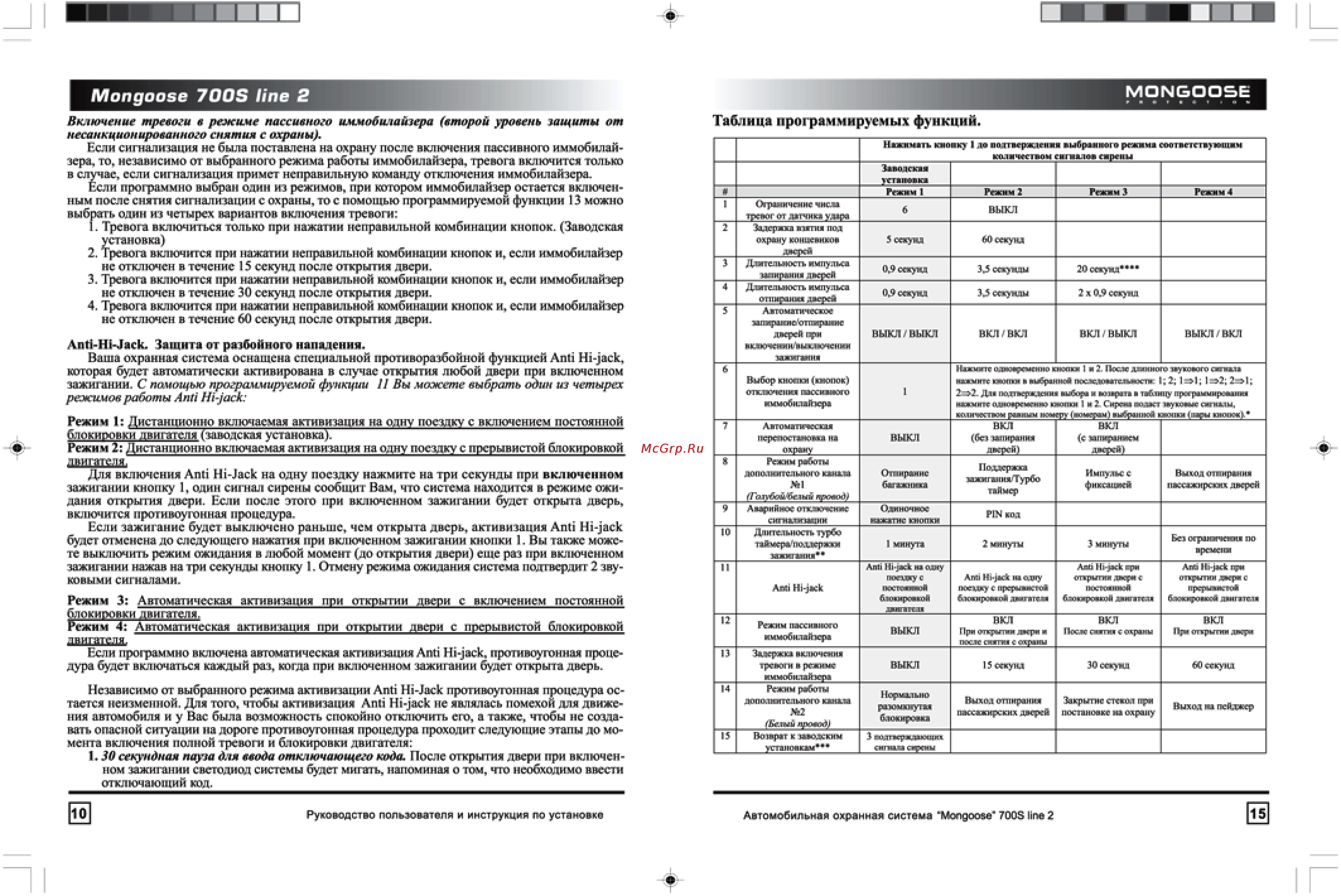 Mongoose IQ-215Руководство по эксплуатации автосигнализации Mongoose IQ-215 |