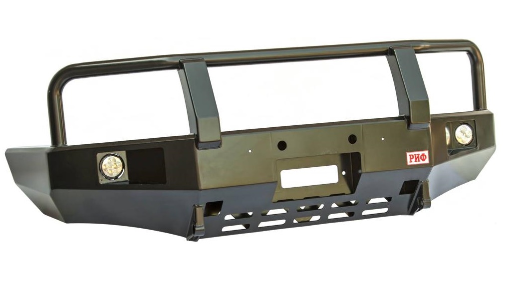 Силовой бампер РИФ может дополнительно оснащаться креплением под лебедку.Некоторые умельцы изготавливают бампера из алюминия, что так же делает их прочными и довольно легкими. Как правило, такая защита изготавливается из нескольких гнутых силовых дуг, сделанных из металла.