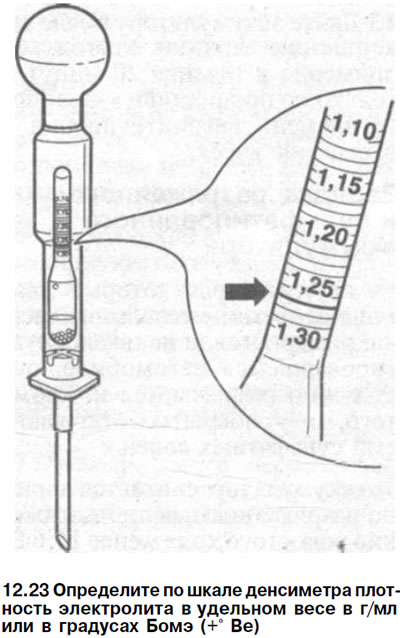 - При полученных значениях густоты в диапазоне 1,18-1,20 г/см³, правильным решением станет процедура замены части электролита в банке на новый, нормальной концентрации- 1,27 г/см³.