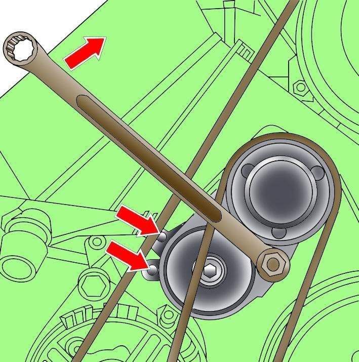 - Ослабленное натяжение. При ослаблении натяжки ремня подлежит замене автоматическое натяжное устройство.