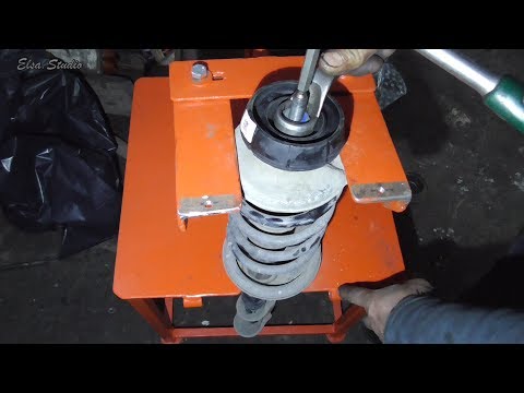 Алгоритм действий будет следующий: Надежно зафиксируйте амортизатор, например, в тесках. Накройте пружину стяжкой таким образом, чтобы соблюдалось ее свободное перемещение между верхней и нижней опорой.