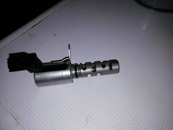 - в дальнейшем потребуется промыть клапан VVT-I, и проверить работоспособность кратковременной подачей напряжения 12 В. Подача питания на датчик сопровождается втягиванием штока, при снятии напряжения шток отпадает. Потребуется обратить внимание на свободу перемещения штока. Если он ходит легко, то датчик исправен.