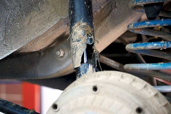Элементы крепежа этого демпфирующего устройства не должны быть сломанными или поврежденными коррозией, а резиновые подушки и втулки в нижнем шарнире должны быть целостными, без видимых следов разрушения.