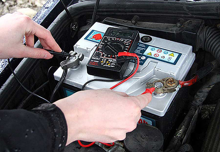 - Оцените напряжение, подаваемое аккумулятором. Если он окажется ниже 11В – это непригодный и полностью разряженный аккумулятор, восстановить его практически невозможно.