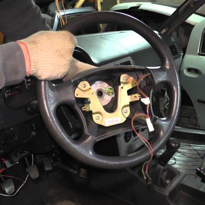 Отсоедините провода подушки безопасности и кнопки рулевого управления.