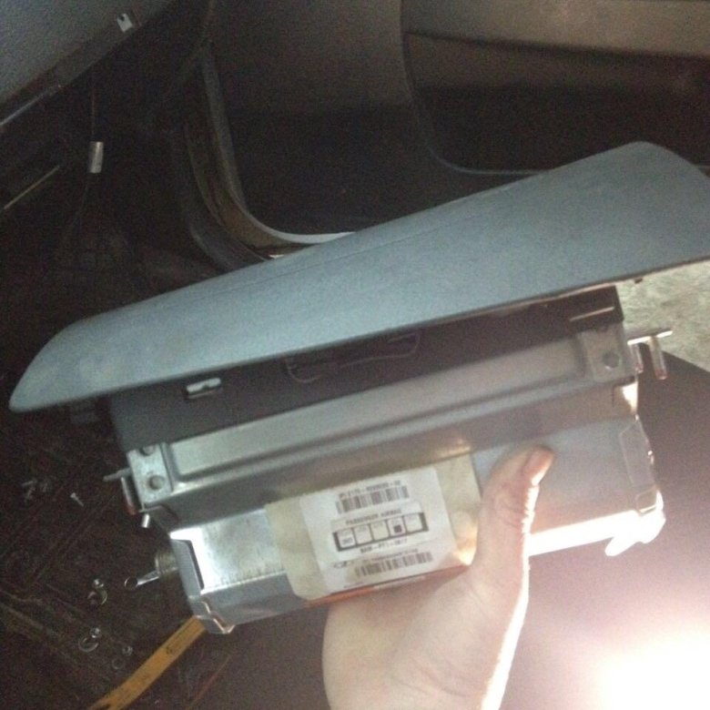 Подушка безопасности пассажира находится за перчаточным ящиком, поэтому в зависимости от автомобиля для правильной замены может потребоваться снятие приборной панели.