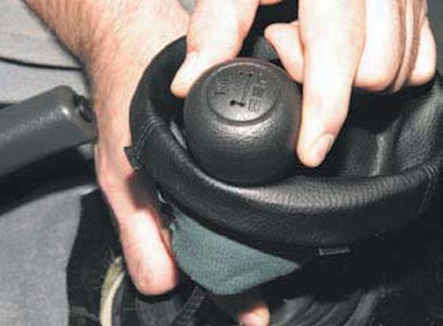 Чтобы снять рукоятку переключения КПП, берёте тоненькую отвёртку и заводите её под ручку, там есть специальный «сухарь», вытаскиваем его и теперь можно тянуть ручку КПП на себя, снимается она очень легко.