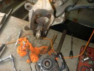 ΠΠ»Ρ ΡΠ½ΡΡΠΈΡ ΡΡΡΠΏΠΈΡΠ½ΠΎΠ³ΠΎ ΠΏΠΎΠ΄ΡΠΈΠΏΠ½ΠΈΠΊΠ° Π½Π΅ΠΎΠ±Ρ ΠΎΠ΄ΠΈΠΌΠΎ ΠΎΡΠΊΡΡΡΠΈΡΡ Π³Π°ΠΉΠΊΡ, ΠΊΠΎΡΠΎΡΠ°Ρ ΡΠΈΠΊΡΠΈΡΡΠ΅Ρ Π΅Π³ΠΎ ΠΈ Π²ΡΡΠ°ΡΠΈΡΡ ΡΠΎΠ»ΡΡΡΡ ΠΌΠ΅ΡΠ°Π»Π»ΠΈΡΠ΅ΡΠΊΡΡ ΡΠ°ΠΉΠ±Ρ. ΠΠ° Π²Π΅Π΄ΡΡΠΈΡ ΠΊΠΎΠ»Π΅ΡΠ°Ρ ΠΎΠ½Π° Π½Π°ΠΊΡΡΡΠ΅Π½Π° Π½Π° ΠΏΡΠΈΠ²ΠΎΠ΄Π½ΠΎΠΉ Π²Π°Π», Π½Π° Π²Π΅Π΄ΠΎΠΌΡΡ ΠΊΠΎΠ»Π΅ΡΠ°Ρ Π½Π° ΠΎΡΡ ΠΊΡΠ»Π°ΠΊΠ°. ΠΠΎΡΠ»Π΅ ΡΡΠΎΠ³ΠΎ ΠΏΡΠΈΠΏΠΎΠ΄Π½ΠΈΠΌΠΈΡΠ΅ Π°Π²ΡΠΎΠΌΠΎΠ±ΠΈΠ»Ρ, ΠΊΠ°ΠΊ ΠΎΠΏΠΈΡΠ°Π½ΠΎ Π²ΡΡΠ΅. Π‘Π½ΠΈΠΌΠΈΡΠ΅ ΠΊΠΎΠ»Π΅ΡΠ° (Π΅ΡΠ»ΠΈ ΠΌΠ΅Π½ΡΠ΅ΡΠ΅ Π»ΠΈΡΡ Ρ ΠΎΠ΄Π½ΠΎΠΉ ΡΡΠΎΡΠΎΠ½Ρ, ΡΠΎ ΠΊΠΎΠ»Π΅ΡΠΎ). ΠΡΠΊΡΡΡΠΈΡΠ΅ Π½Π°ΠΏΡΠ°Π²Π»ΡΡΡΠΈΠ΅ ΡΠΎΡΠΌΠΎΠ·Π½ΠΎΠ³ΠΎ ΡΡΠΏΠΏΠΎΡΡΠ° ΠΈ ΡΠ½ΠΈΠΌΠΈΡΠ΅ ΠΊΠΎΠ»ΠΎΠ΄ΠΊΠΈ. ΠΡΠΊΡΡΡΠΈΡΠ΅ Π±ΠΎΠ»ΡΡ ΠΊΡΠ΅ΠΏΠ»Π΅Π½ΠΈΡ ΡΠΊΠΎΠ±Ρ ΡΠΎΡΠΌΠΎΠ·Π½ΠΎΠ³ΠΎ ΡΡΠΏΠΏΠΎΡΡΠ° ΠΈ ΡΠ½ΠΈΠΌΠΈΡΠ΅ Π΅Π΅. Π‘Π½ΠΈΠΌΠΈΡΠ΅ ΡΠΎΡΠΌΠΎΠ·Π½ΠΎΠΉ Π΄ΠΈΡΠΊ. ΠΠ΅ΡΠ΅Π΄ΠΊΠΎ Π΄Π»Ρ ΡΡΠΎΠ³ΠΎ ΡΡΡΠΊ ΡΠΎΡΠΌΠΎΠ·Π½ΠΎΠ³ΠΎ Π΄ΠΈΡΠΊΠ° ΠΈ ΡΡΡΠΏΠΈΡΡ ΠΏΡΠΈΡ ΠΎΠ΄ΠΈΡΡΡ ΠΎΠ±ΡΠ°Π±Π°ΡΡΠ²Π°ΡΡ ΠΆΠΈΠ΄ΠΊΠΎΡΡΡΡ WD-40. ΠΠ° Π·Π°Π΄Π½Π΅ΠΉ ΠΎΡΠΈ Ρ Π±Π°ΡΠ°Π±Π°Π½Π½ΡΠΌΠΈ ΡΠΎΡΠΌΠΎΠ·Π°ΠΌΠΈ Π½Π΅ΠΎΠ±Ρ ΠΎΠ΄ΠΈΠΌΠΎ ΡΠ½ΡΡΡ Π±Π°ΡΠ°Π±Π°Π½ ΠΈ ΠΊΠΎΠ»ΠΎΠ΄ΠΊΠΈ.