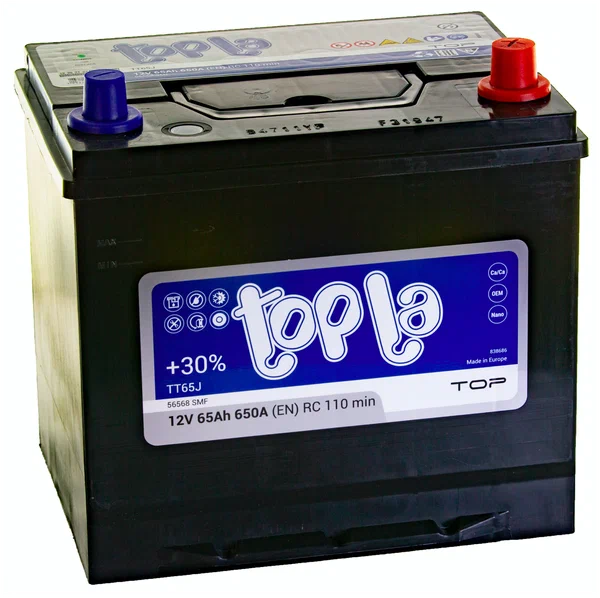 В качестве исключения хотим добавить. На азиатских аккумуляторах часто пишут особый код, в котором зашифрованы примерная емкость, габаритные размеры и полярность. Выглядит он так: 65D23L.