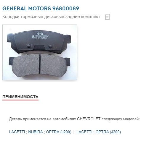 В таком случае требуются колодки с артикулом 96405131, цена оригинальных колодок около $20-22. - После декабря 2006 года. Такой машине необходимы колодки с артикулом 96800089.