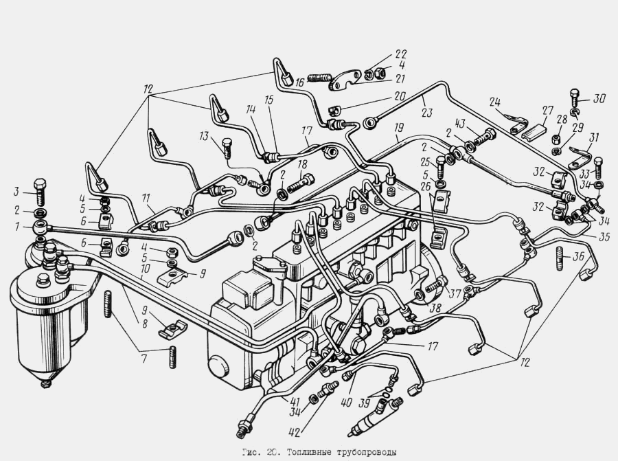 Примечание. Отверстия в штуцерах форсунок, секции ТНВД и концы труб высокого давления защищены от пыли и грязи