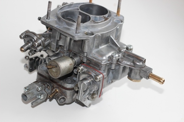 Металлический литой корпус карбюратора содержит множество мелких деталей