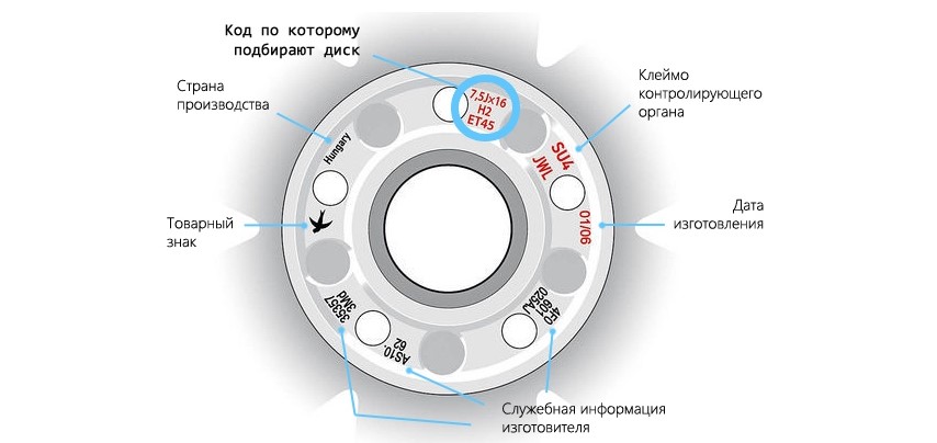 расшифровка обозначений на колесных дисках для легковых автомобилей