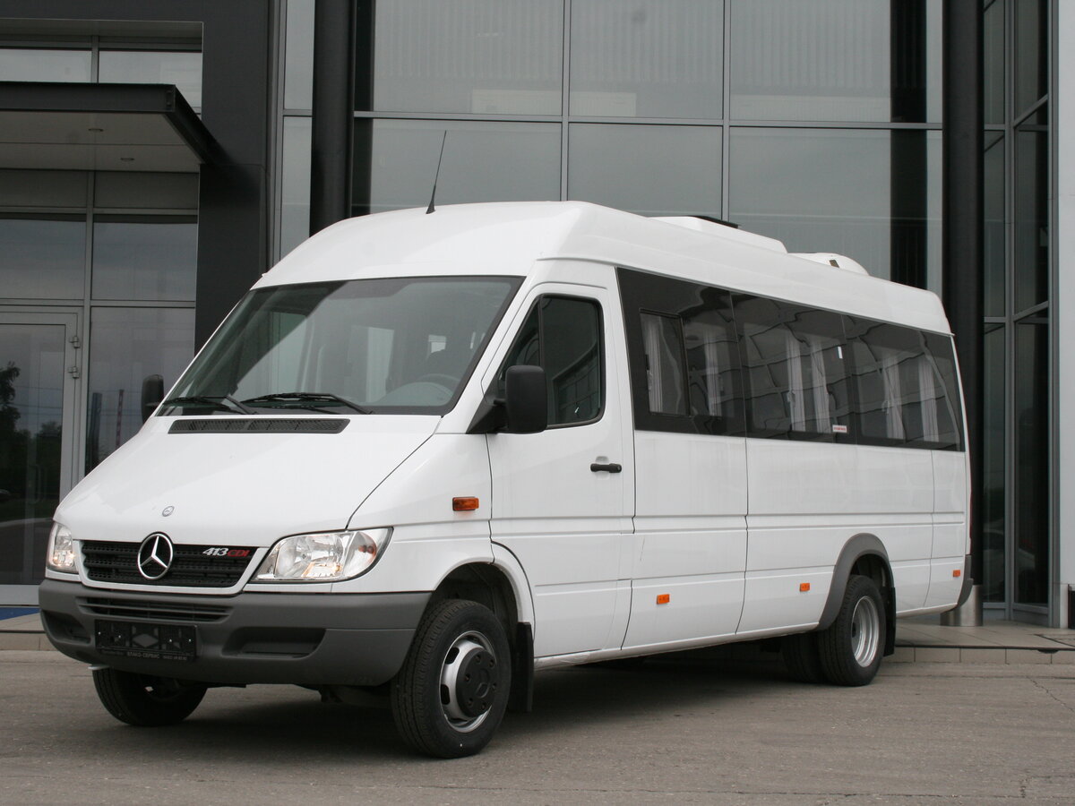 Маршрутное такси отличается удлиненным кузовом и количеством посадочных мест 22+1 для водителя. Посадка в салон с помощью одной раздвижной двери, для комфортного передвижения установлены поручни и кондиционер. В стоке Mercedes-Benz Sprinter оснащен механической коробкой передач и задним приводом.