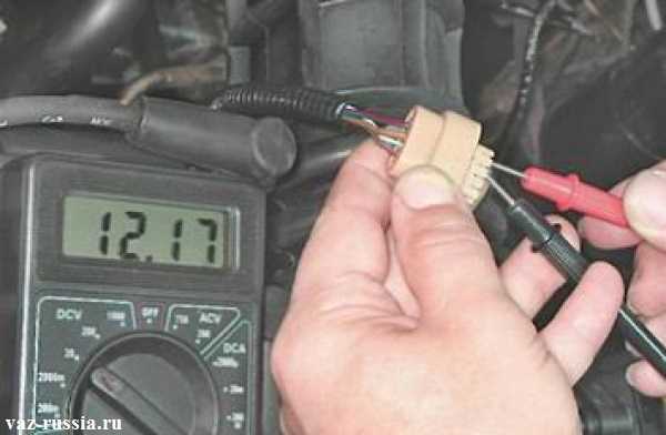 Вообще при работе с модулем рекомендуется обесточивать бортовую систему (Сеть обесточивается по средством скидывания клеммы минус с АКБ, о том как скинуть клемму если вы не знаете, читайте в статье: «Замена аккумулятора », в пункте первом той статьи всё написано), мало ли что может случиться, поэтому безопасность при выше всего, но прежде чем обесточивать систему проверьте колодку проводов которая подсоединяется к модулю и после этого можете её обесточить, для проверки отсоедините её и поверните ключ зажигания до такого момента когда все приборы в автомобиле загорятся, как только загорелись они берите в руки мульти-метр и включайте на нём режим вольтметра и замеряйте напряжение на колодке, для этого подсоедините два провода идущих от мульти-метра, один из проводов подсоединяйте к выводу который промаркирован (см. на колодку проводов, на ней есть эти маркировки) буквой С, а другой который промаркирован буквой D и прибор должен показать напряжение в 12 В, если показывает меньше или же вообще ничего не показывает, то либо разрядилась аккумуляторная батарея или же неисправна проводка, а вот чтобы проверить сам модуль зажигания это уже лучше делать либо с помощью специального прибора, либо поменять его на заведомо исправный модуль взяв у соседа на пример (Если у него такой же автомобиль), либо с помощью того же самого мульти-метра можно попробовать (Но даже мульти-метр может показать не верные результаты, поэтому на этот способ особо не полагайтесь), о том как это сделать читайте в статье: «Замена модуля и катушки на ВАЗ », а именно в той статье пункт «Примечание!» прочтите!