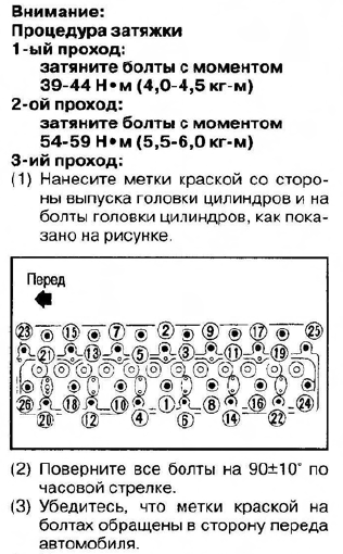 Первую затяжку желательно произвести с небольшим усилием. Что бы предварительно выровнять плоскость головки относительно блока цилиндров.