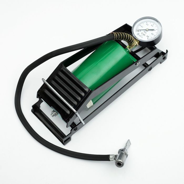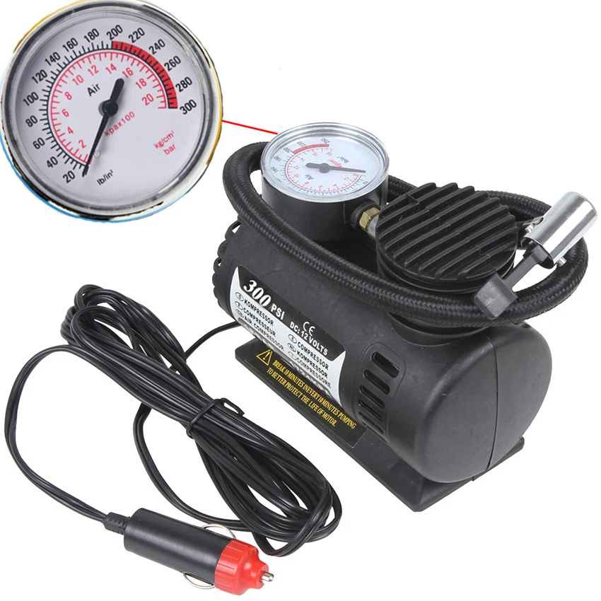 Насос подключается к прикуривателю, без перерыва аппарат работает примерно 20 мин., подавая 35 л воздуха в минуту. Компрессор укомплектован набором игл для накачки велосипедных шин, надувных матрасов, мячей и т. п. В устройство встроен фонарик. Шину радиусом 15 дюймов такой насос накачивает за 7 минут.