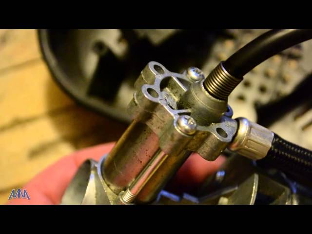 Открутите 4 винта на корпусе, затем винты на поршневой головке. Извлеките уплотнитель и клапан.