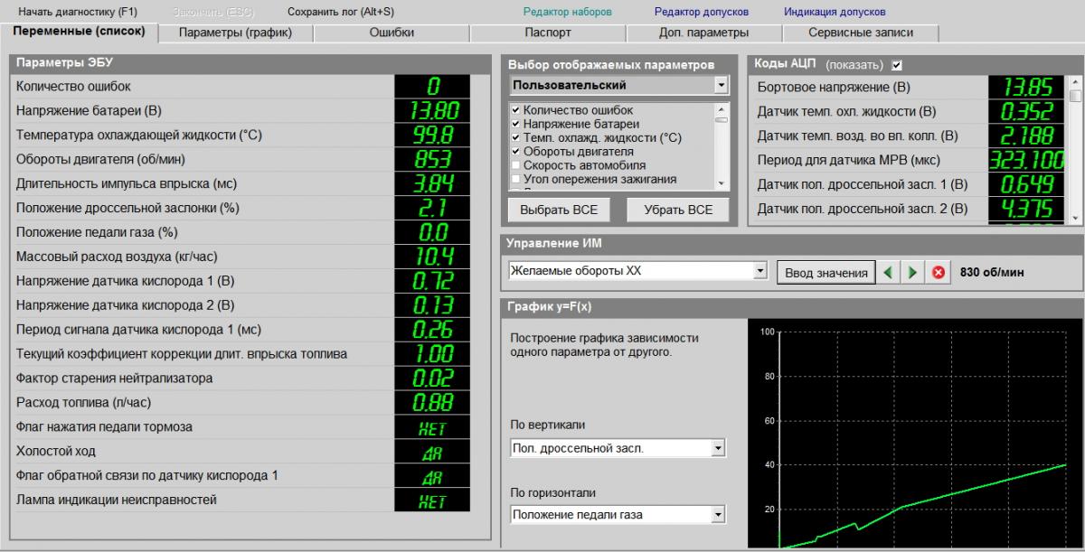 Вы можете оценить исправность важных датчиков автомобиля, лямбда-зонда (датчика кислорода), ДМРВ (датчика массового расхода воздуха) и др.