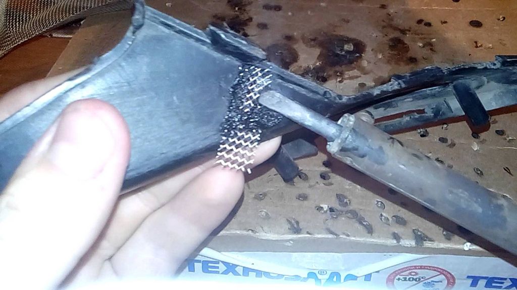 - Начинаем паять детали бампера с внутренней стороны, это позволит понять какими свойствами обладает материал без значительного ущерба для внешнего вида.