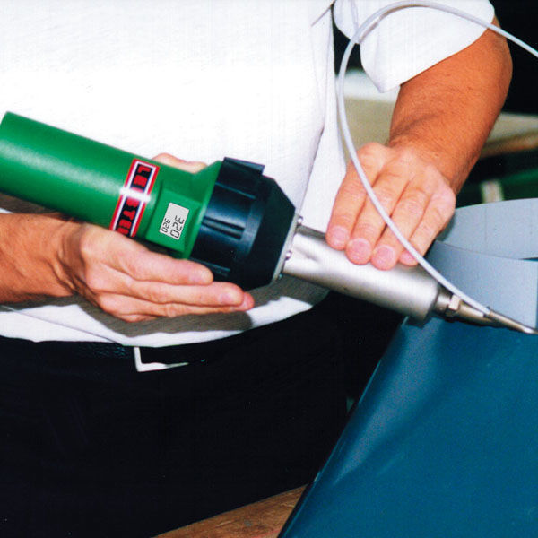 Сварка осуществляется с помощью теплоэлектровентилятора (фена). Правильный выбор температуры, как сообщалось выше, имеет очень большое значение, поэтому фен должен быть оснащен термостатом для автоматического регулирования температуры воздуха, подаваемого в зону сварки. В зависимости от типа свариваемого термопласта температура сварки составляет 300—400 °С. Подлежащий свариванию материал и присадочный пруток подвергают плавному разогреву. Как только оба материала перейдут в вязкотекучее состояние, присадочный пруток вдавливают в канавку, применяя постоянное усилие (5~10 Н), под углом около 90° относительно свариваемой поверхности. Стабильное угловое положение фена и равномерное нагревание присадочного прутка лучше всего обеспечиваются благодаря использованию специальной насадки для высокоскоростной сварки, надеваемой на выходное отверстие фена .