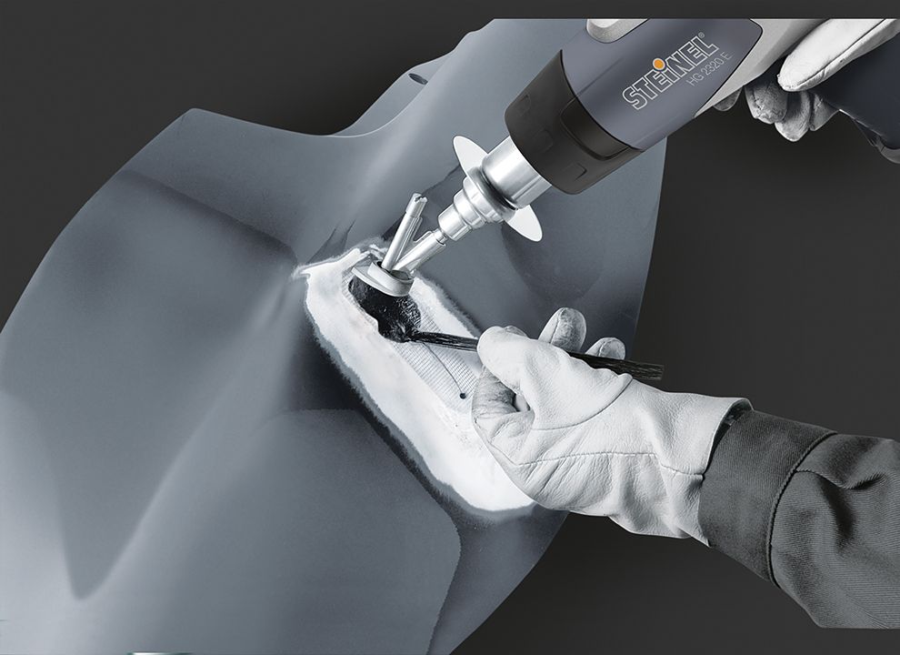 В зависимости от материала, в зоне сварки поддерживается режим от 300 до 600°C. Чтобы правильно выставить температуру разогрева фена, сначала делают пробу с задней стороны бампера.