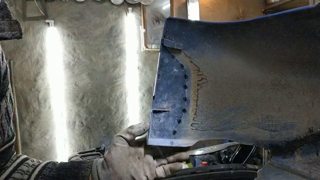 Запаиваем бампер с наружной стороны.